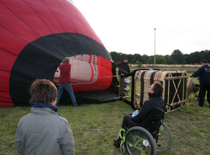 Kein Rollstuhl ist für Ballonfahrten bzw. Landungen in einem Ballonkorb konstruiert bzw. zugelassen.
